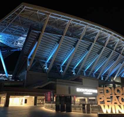 南極が広島にやってくる!イベント日に合わせて3月21日(土)、4月25日(土)の2日間にわたりエディオンピースウィング広島が南極をイメージして水色にライトアップされます!